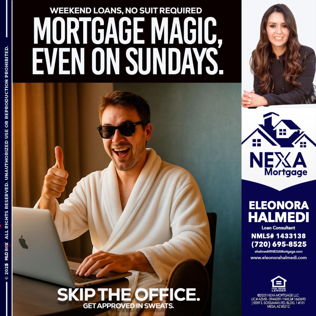 MORTGAGE MAGICS - Eleonora Halmedi -Mortgage AdvisorHi, my name is Eleonora Halmedi. I’m a Loan Officer with NEXA Mortgage LLC., offering personalized mortgage solutions, fast customized quotes, great rates and service with integrity.
