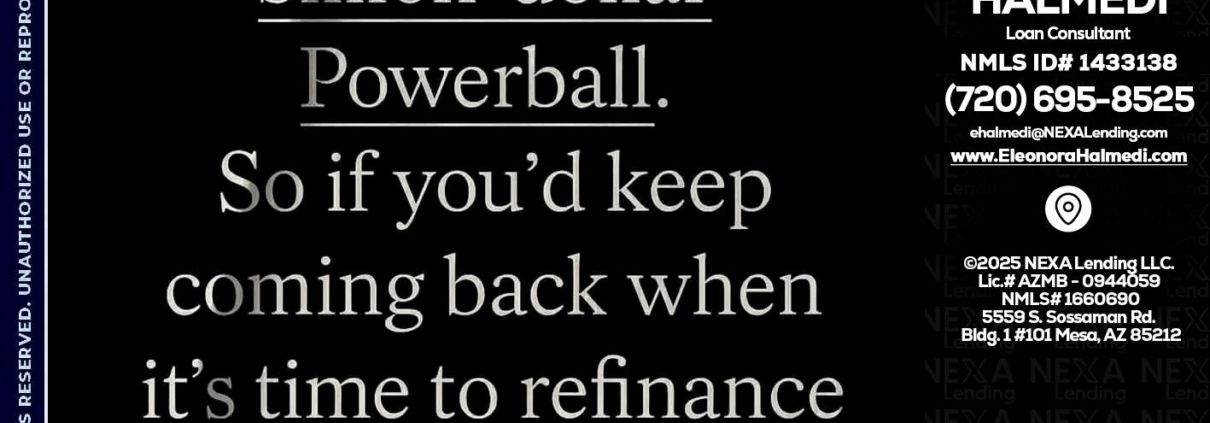 Hi, my name is Eleonora Halmedi. I’m a Loan Officer with NEXA Lending LLC., offering personalized mortgage solutions, fast customized quotes, great rates and service with integrity.