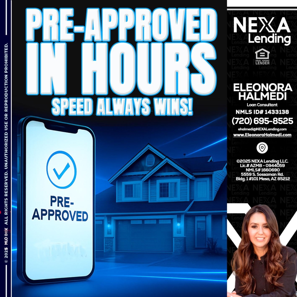 Hi, my name is Eleonora Halmedi. I’m a Loan Officer with NEXA Mortgage LLC., offering personalized mortgage solutions, fast customized quotes, great rates and service with integrity.