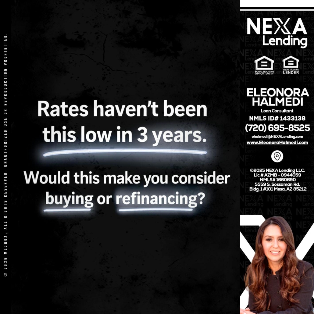 Hi, my name is Eleonora Halmedi. I’m a Loan Officer with NEXA Lending LLC., offering personalized mortgage solutions, fast customized quotes, great rates and service with integrity.