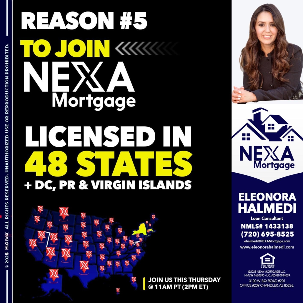 Hi, my name is Eleonora Halmedi. I’m a Loan Officer with NEXA Mortgage LLC., offering personalized mortgage solutions, fast customized quotes, great rates and service with integrity.