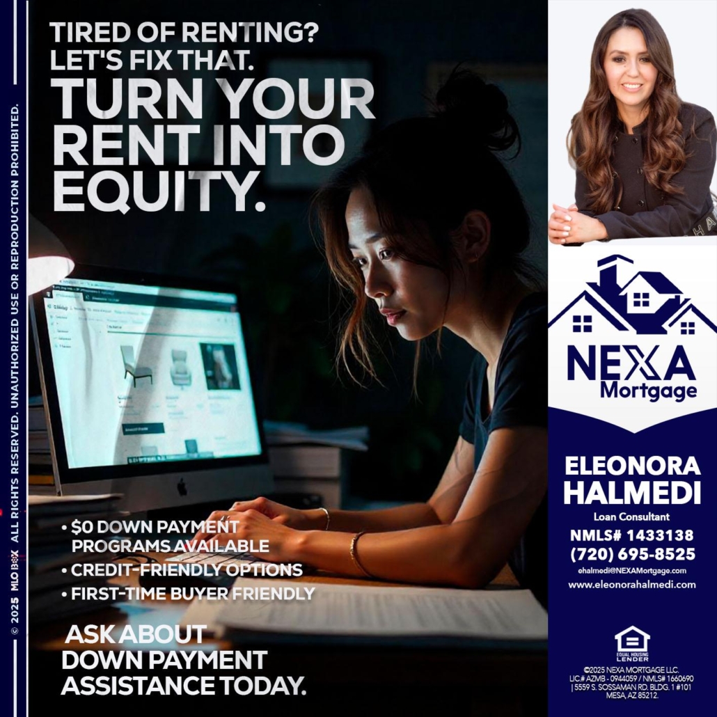 tired of renting? - Eleonora Halmedi -Mortgage AdvisorHi, my name is Eleonora Halmedi. I’m a Loan Officer with NEXA Mortgage LLC., offering personalized mortgage solutions, fast customized quotes, great rates and service with integrity.