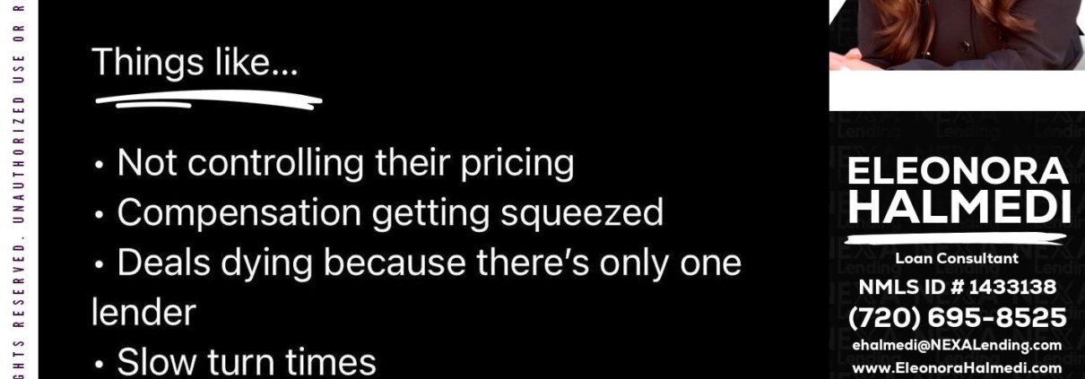 Hi, my name is Eleonora Halmedi. I’m a Loan Officer with NEXA Lending LLC., offering personalized mortgage solutions, fast customized quotes, great rates and service with integrity.