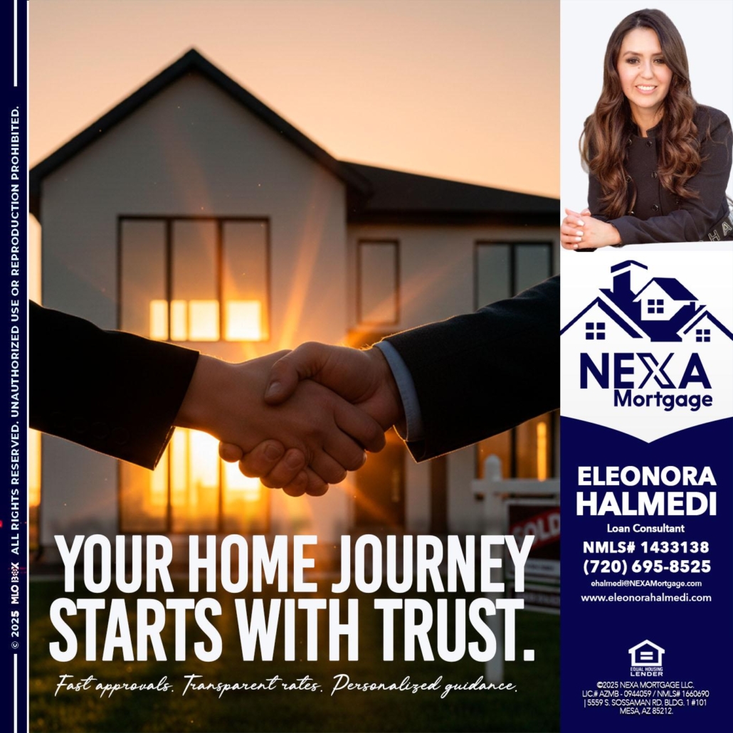 Hi, my name is Eleonora Halmedi. I’m a Loan Officer with NEXA Mortgage LLC., offering personalized mortgage solutions, fast customized quotes, great rates and service with integrity.